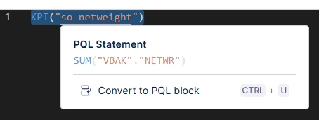 - ‘Net Weight’ = KPI(“so_netweight”)