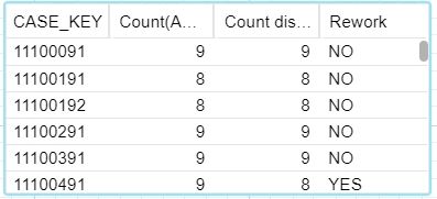 I have added an OLAP table with three columns where the Count of activities is compared to the Distinctcount activity for each case key. Please find attached the OLAP table.