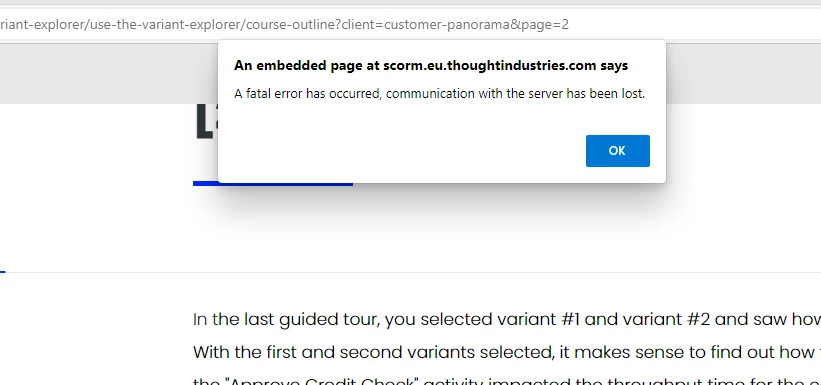 Hi,I am getting an error while training at Celonis Academy. Please find screen shot below.Any idea for solution ?