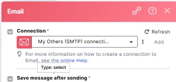 I need your help with the Email connection settings in Actionflow. For a connection that has already been created, I would like to check what settings were configured. Where can I verify this?