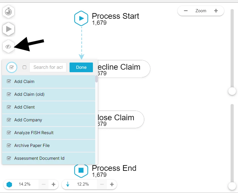 How can I upload a list of values instead of selecting each value individually? For example, when clicking on the hidden activities icon in the process explorer and choosing a list of activities to hide.