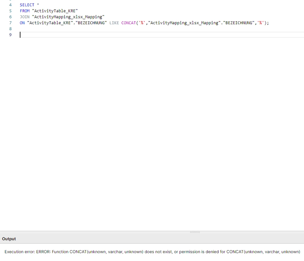 Everytime i try to use the following query i get an eror message. It looks like this type of query with "LIKE", "CONCAT" and 2 wildcards is not allowed. Is there any possible solution?