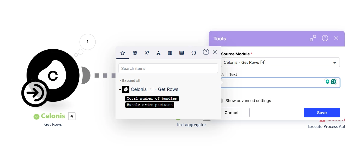 I used Get Rows and added column names. Then created a Text Aggregator but i can;t see the columns created in the Get Rows, can anyone help me on this.