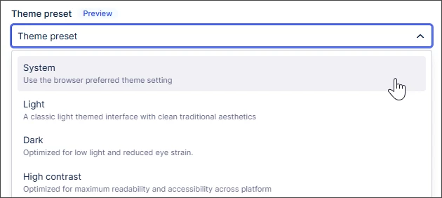 You can now personalize your interface with light, dark, or high contrast themes via your user profile. This update improves accessibility and reduces eye strain for all users. Plus, Studio creators can now define specific dark-mode brand colors to ensure custom dashboards stay readable in any view.