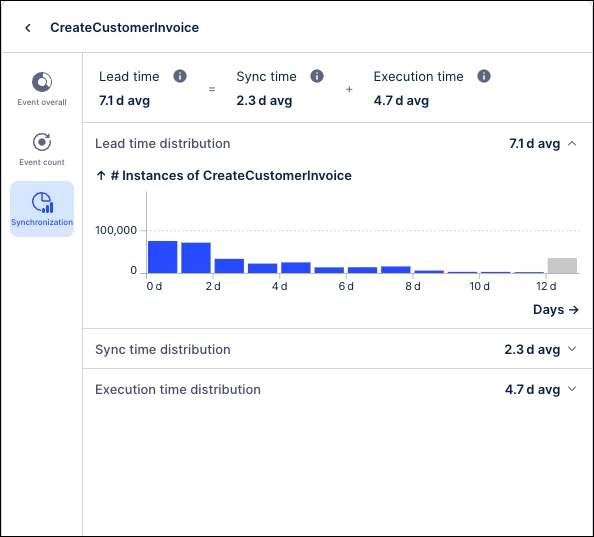 We’ve added a Synchronization tab to Event Explorer, introducing Event Lead, Sync Time, and Execution Time metrics. These out-of-the-box insights help Data Analysts pinpoint exactly where processes idle or wait for multiple inputs, making it easier to identify and eliminate hidden bottlenecks.