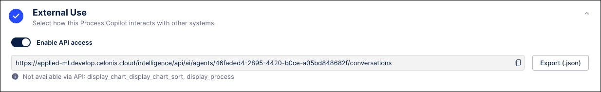 We've simplified Process Copilot creation by removing the internal/external asset distinction during setup. You can now toggle external API access directly in the configuration screen to bridge your process logic with outside tools. This update replaces the fragmented creation flow, allowing you to trigger both internal and external calls from a single chat interface.