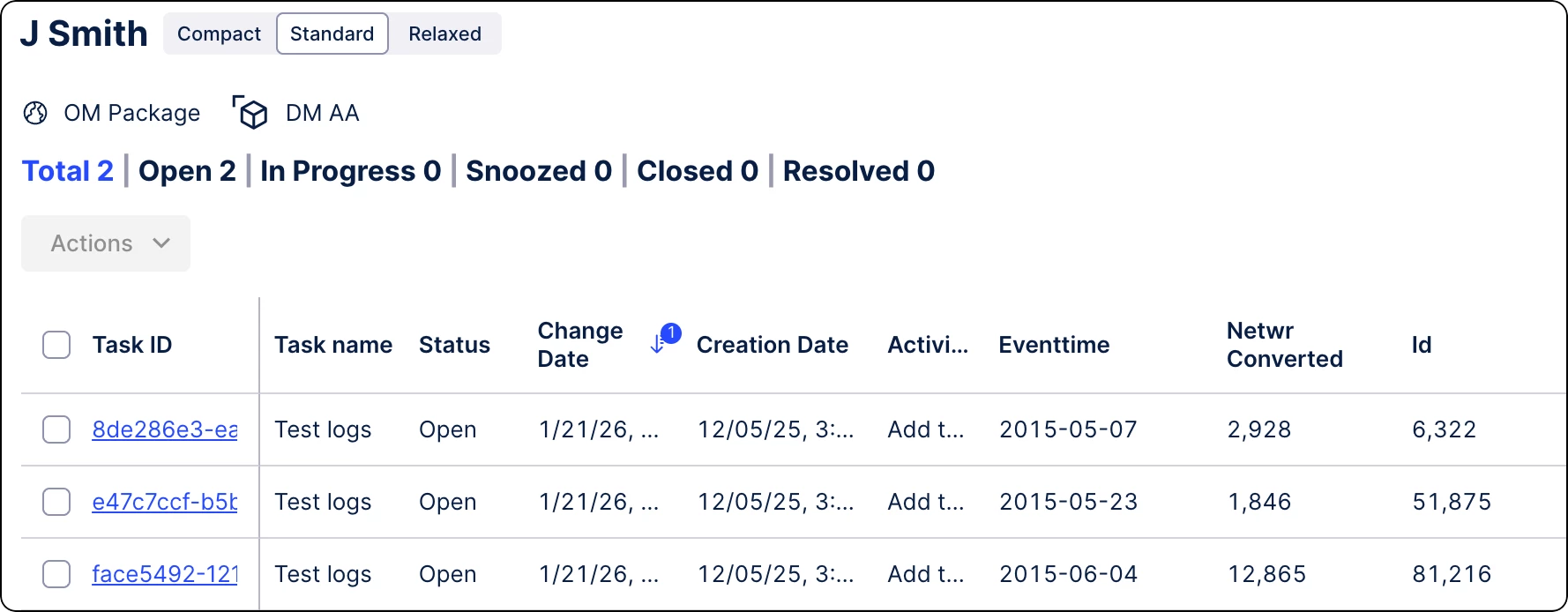 We’ve centralized your workflow by bringing identifier-based Data Model tasks into the standard Tasks Inbox. This update allows all users to manage both record-based and model-triggered tasks in one view, replacing the need to toggle between different screens. It simplifies task management across the platform, ensuring no critical action is missed.