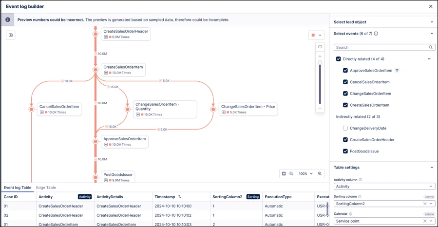 We've added a Process Explorer preview to the Event Log builder. This allows you to visualize your process model in real-time during configuration, ensuring accuracy between the data model and the intended process flow. The preview includes auto-refresh capabilities and supports the visualization of dynamic events.