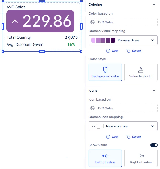 We've extended visual mapping rules for colors and icons to the KPI card and Attribute list components in Views. Extending this functionality to these components gives added flexibility around their use while providing a more consistent visual experience across Views.